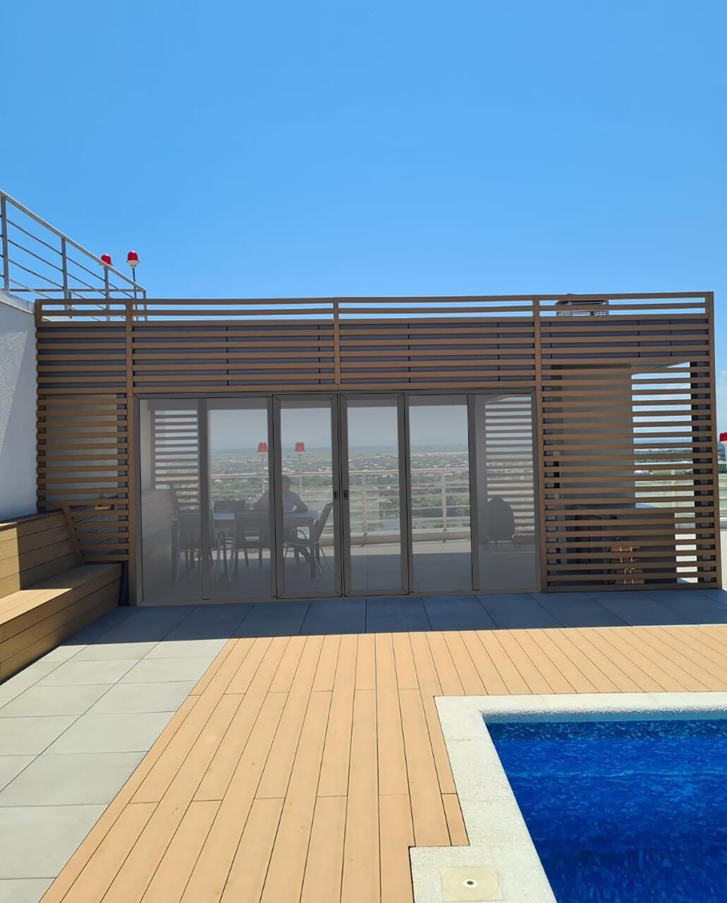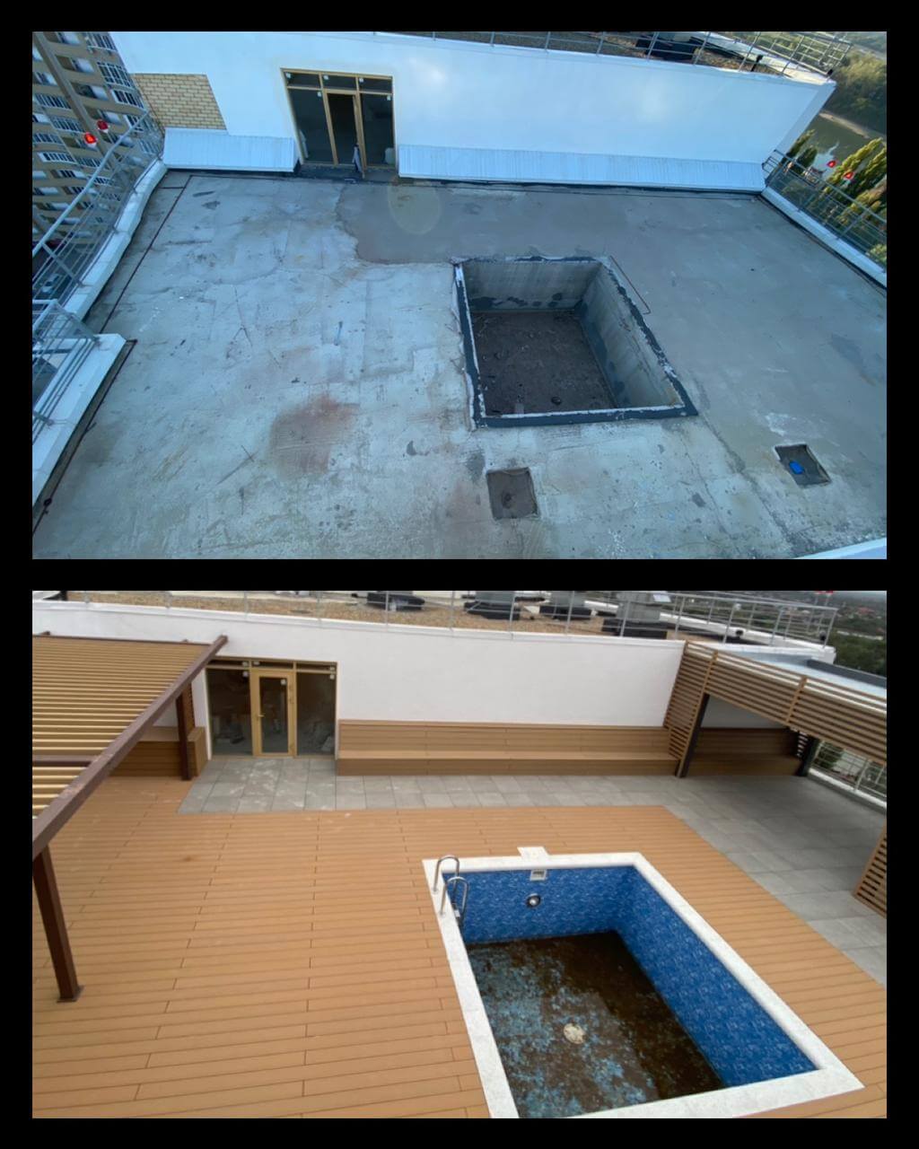 - Краснодар, эксплуатируемая кровля в частном Пентхаусе, керамогранит ITALON и декинг Dortmax на регулируемых опорах Basis