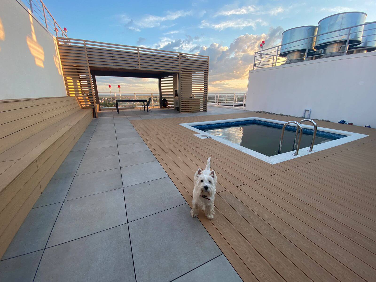 Краснодар, эксплуатируемая кровля в частном Пентхаусе, керамогранит ITALON и декинг Dortmax на регулируемых опорах Basis