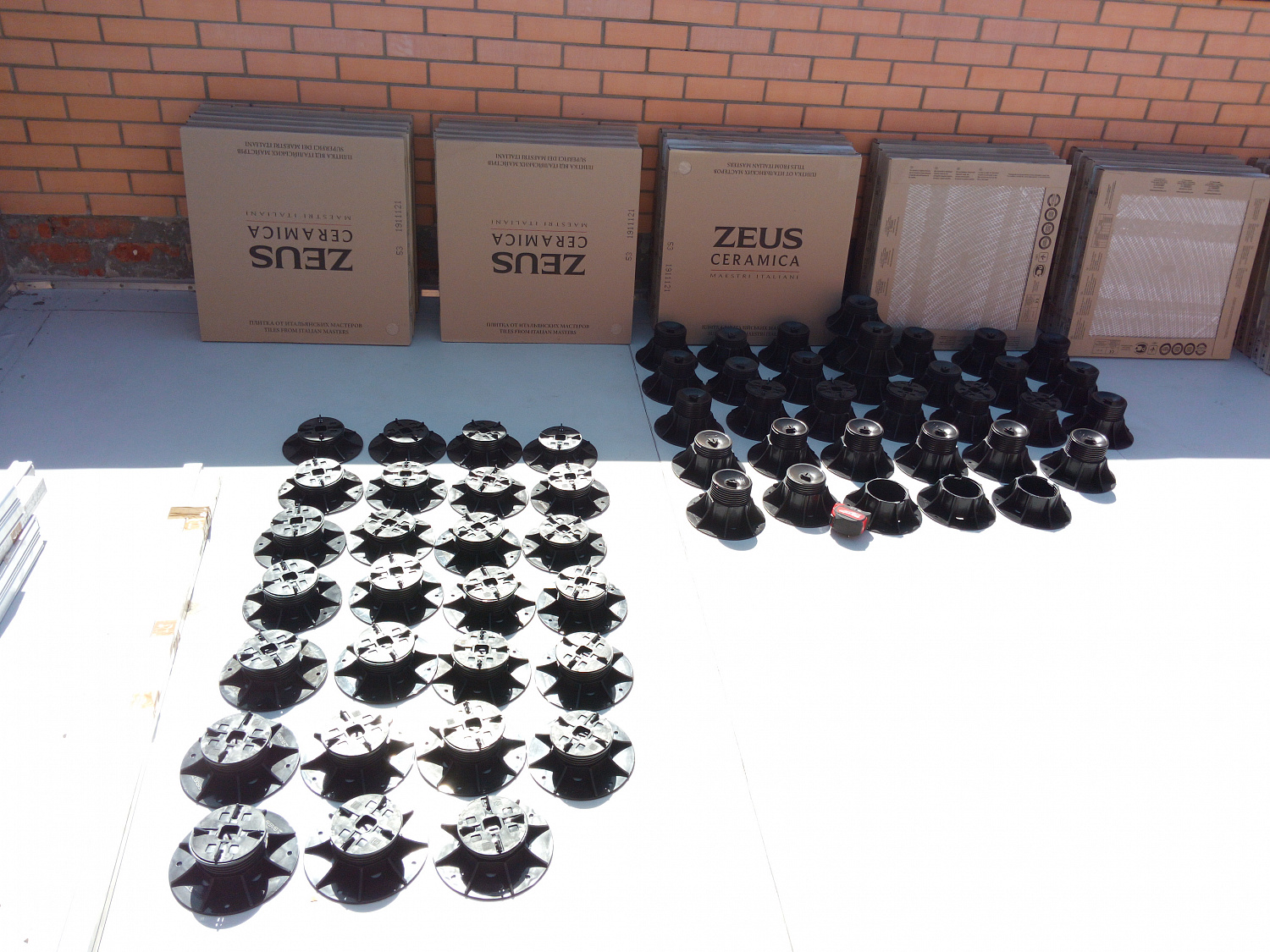 Краснодар, КП Бавария, эксплуатируемая кровля, керамогранит ZEUS, регулируемые опоры BASIS