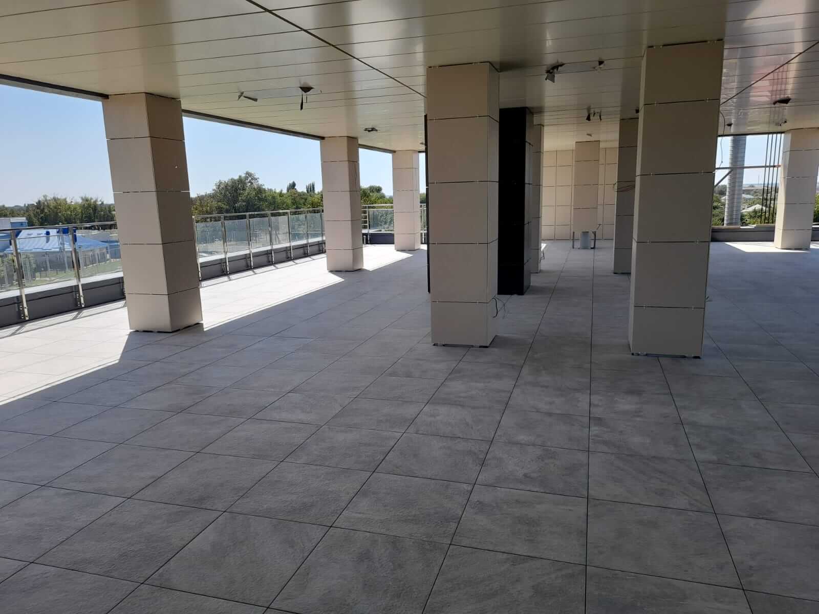 Ростовская область, эксплуатируемая кровля, гостиница "Чайка", керамогранит Atlas Concorde на опорах BASIS